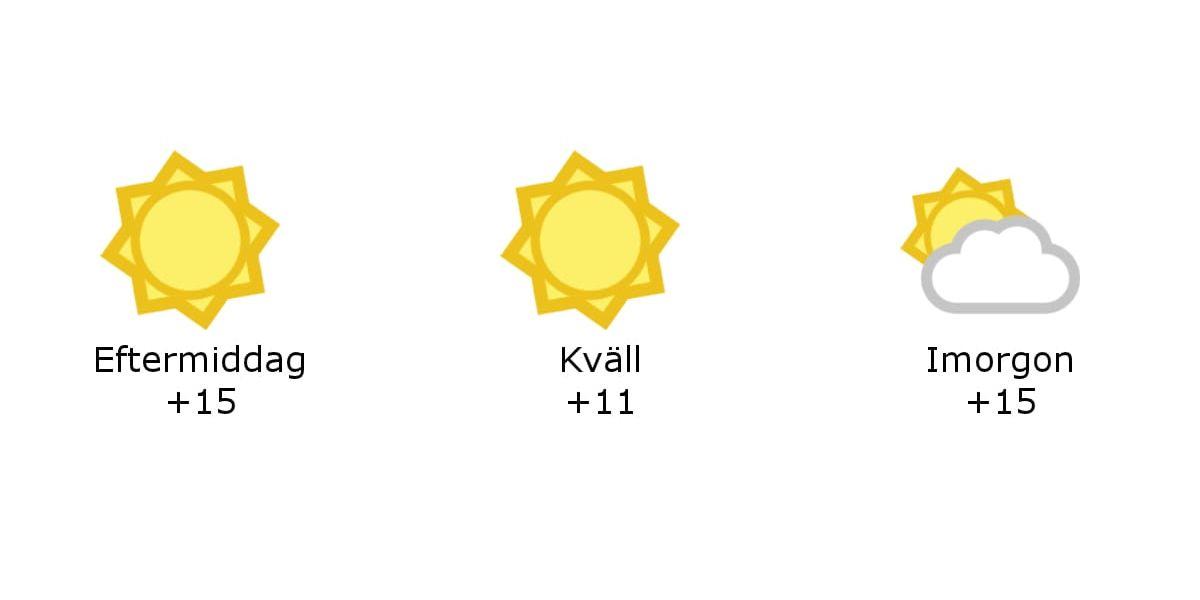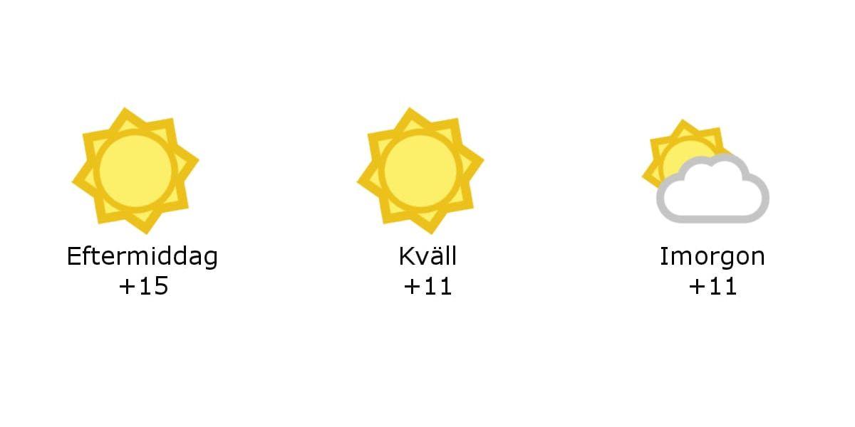 Mellerud: 16 grader och molnigt under eftermiddagenUnder eftermiddagen blir det molnigt väder och temperaturer på 15-17 grader.