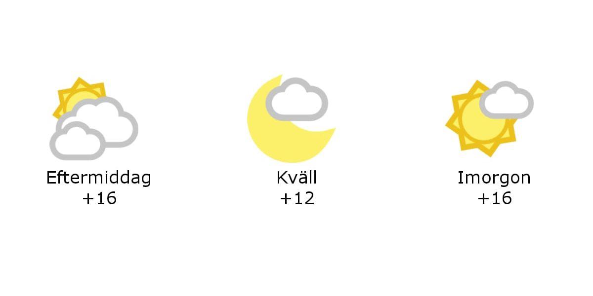 Klart och 16 grader i Mellerud under eftermiddagenUnder eftermiddagen och kvällen blir det vackert väder, svaga ostliga vindar och temperaturer kring 15 grader.