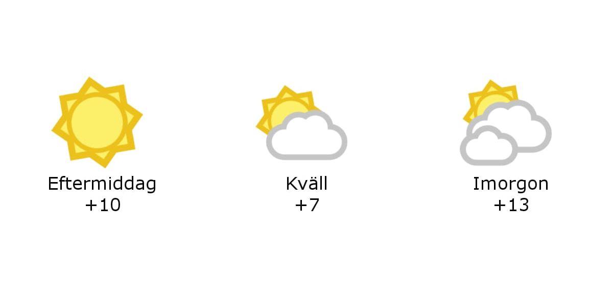 Halvklart och 10 grader i Mellerud under eftermiddagenEftermiddagen väntas ge molnigt väder och temperaturer på runt 10 grader.