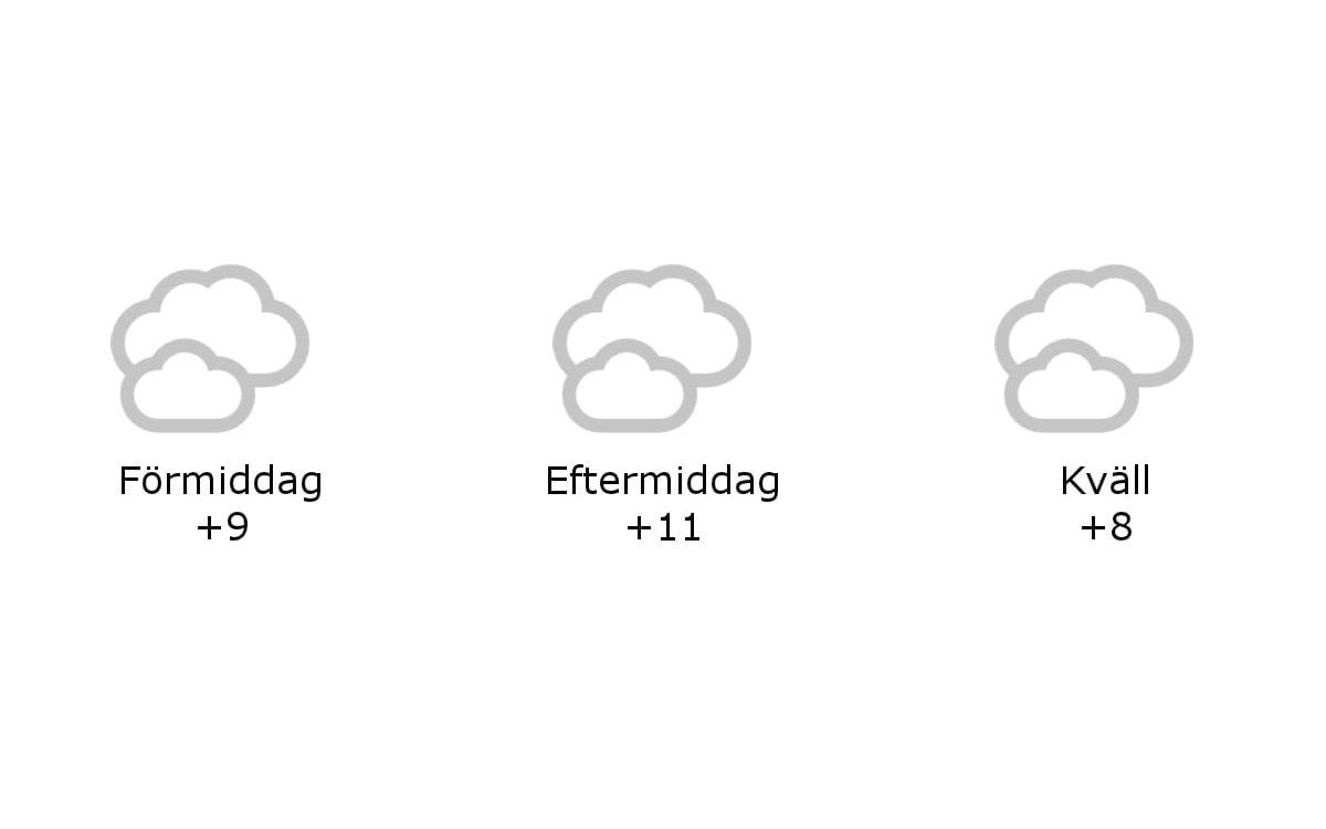 Under dagen bjuds det på molnigt till mulet väder med kortvarigt lätt regn, svaga nordostliga vindar och temperaturer på runt 11 grader.