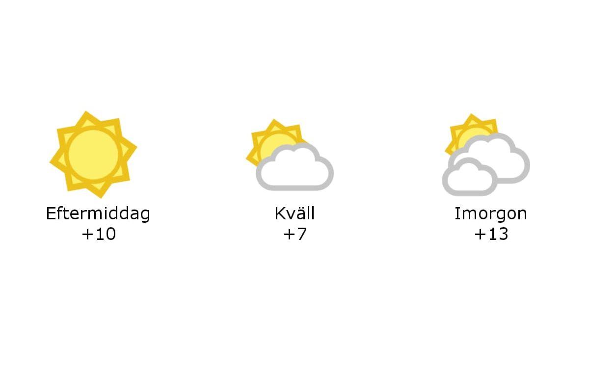 På onsdagen blir det molnigt med svaga vindar och temperaturer runt 13 grader.