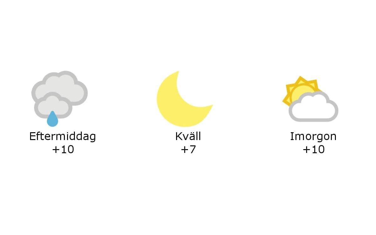 Eftermiddagen ger molnigt till mulet väder med lätt regn och temperaturer på 8-11 grader.