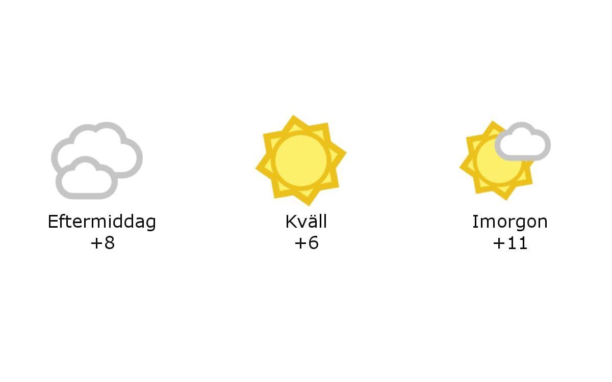 Under eftermiddagen väntas det bli molnigt till mulet väder och temperaturer på 5-7 grader.